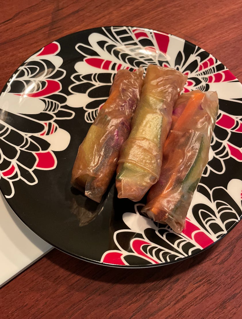 I took pictures of the spring rolls for this recipe, but I just opened them on my computer and 🤣 um, they look horrible and that middle one kind of looks like a penis. So, I made the photo super tiny.
